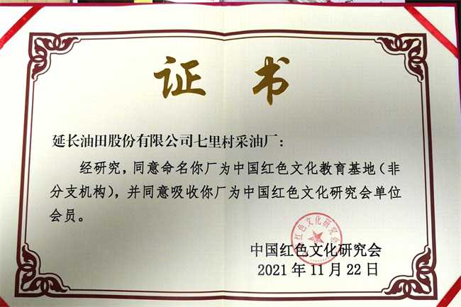 西部決策網(wǎng)訊(記者張靜 通訊員 劉亞萍)日前,延長石油七里村采油廠被中國紅色文化研究會命名為中國紅色文化教育基地,并授牌和頒發(fā)了證書。