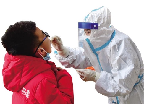 圖為12月18日,西安高新區(qū)丈八街道唐灃社區(qū)核酸檢測點(diǎn)的醫(yī)務(wù)人員在進(jìn)行核酸采樣。本報(bào)記者 杜瑋攝