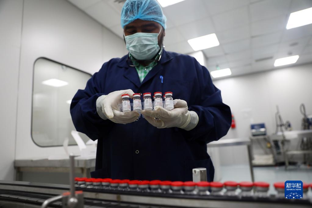 在埃及吉薩的埃及生物制品與疫苗公司疫苗生產(chǎn)廠,工作人員對貼標(biāo)的新冠疫苗進(jìn)行裝盒前準(zhǔn)備(2021年9月6日)。新華社發(fā)(艾哈邁德·戈馬攝)