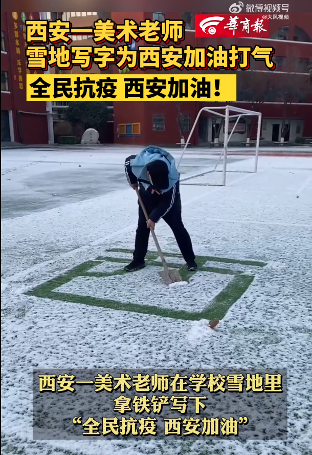 拿鐵鏟寫下“全民抗疫 西安加油”