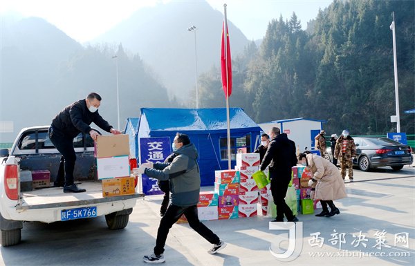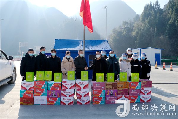 西部決策網(wǎng)訊12月29日,鎮(zhèn)巴縣漢中芳悅茶業(yè)科技有限公司負(fù)責(zé)人帶上食品和飲品等物資,慰問奮戰(zhàn)在鎮(zhèn)巴縣小渡壩高速出入口疫情防控檢查一線的工作人員。