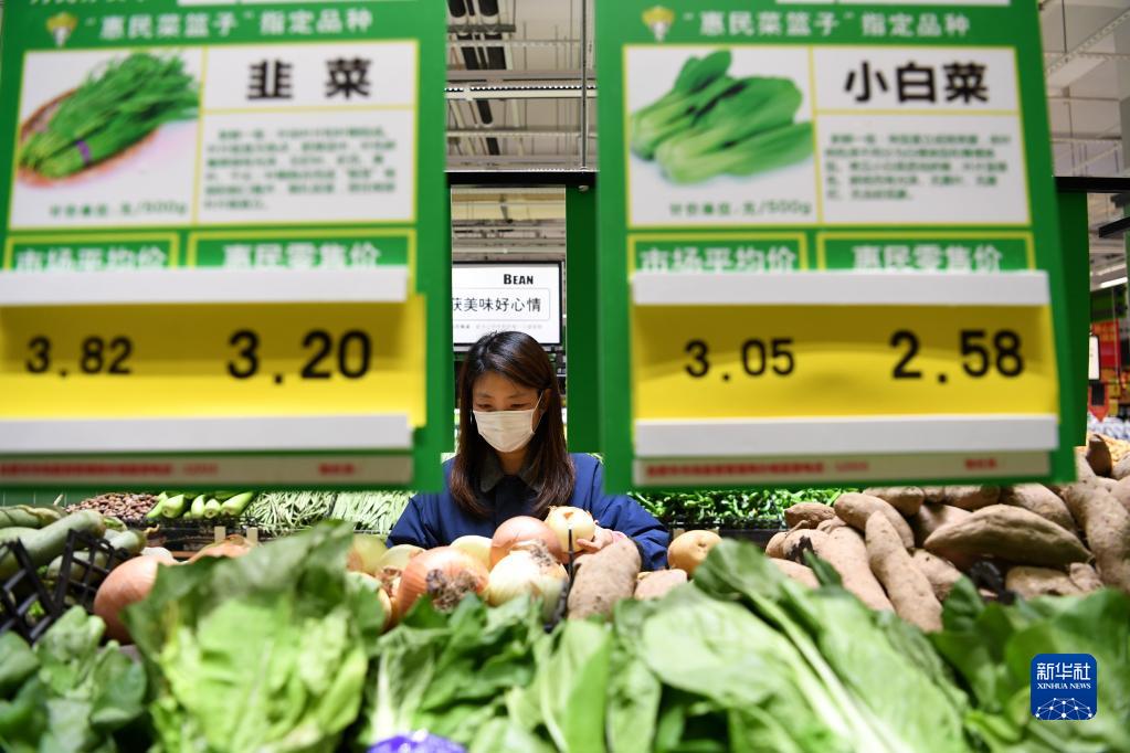 市民在安徽省合肥市經(jīng)開區(qū)芙蓉社區(qū)一家超市選購“惠民菜”(11月7日攝)。新華社記者 劉軍喜 攝