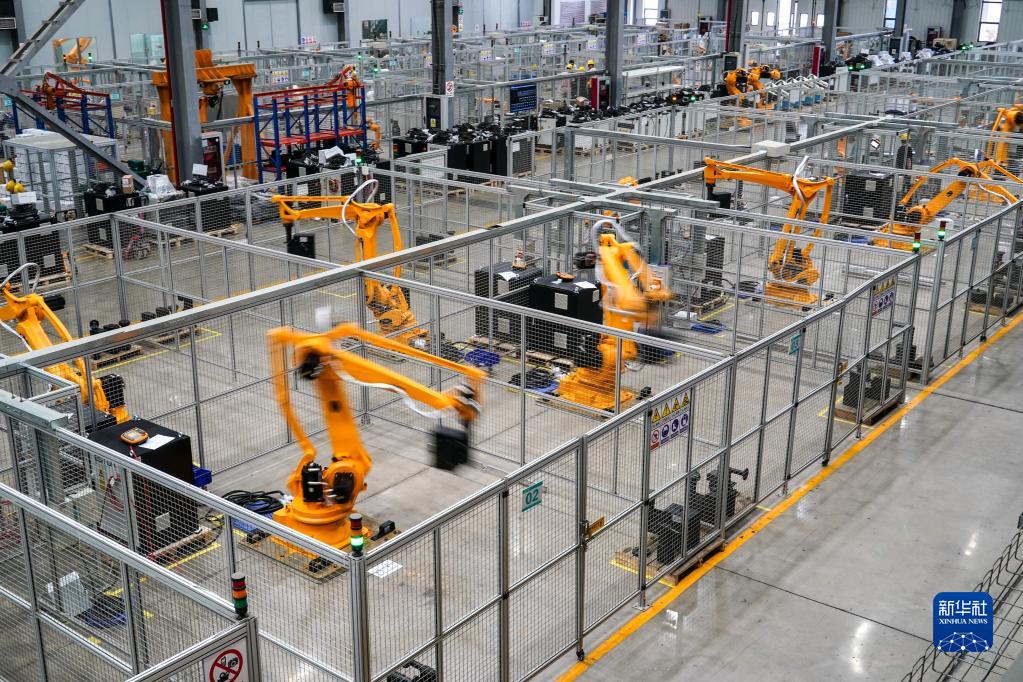 在位于江蘇省南京市江寧區(qū)的南京埃斯頓自動化股份有限公司工業(yè)機(jī)器人生產(chǎn)車間,工業(yè)機(jī)器人在進(jìn)行跑合測試(7月1日攝)。新華社記者 李博 攝