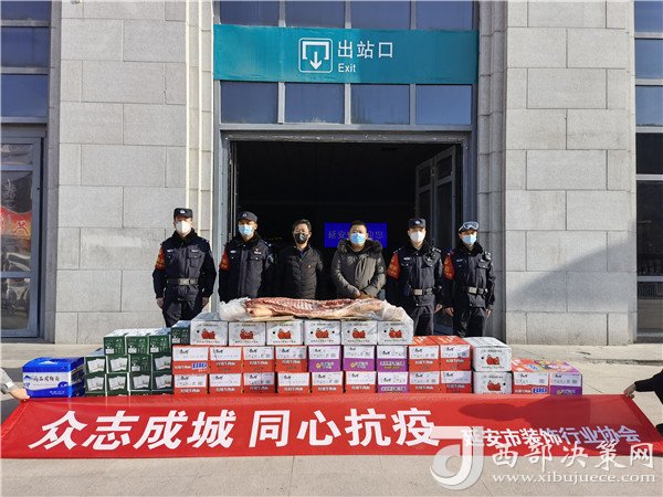 西部決策網(wǎng)訊 疫情擋不住溫情,愛心匯聚戰(zhàn)疫情。1月2日,延安市裝飾行業(yè)協(xié)會一行來到延安火車站,向正在執(zhí)勤的民警、輔警送來豬肉、N95口罩、方便面、牛奶、消毒液等物資,助力一線民警抗擊疫情。