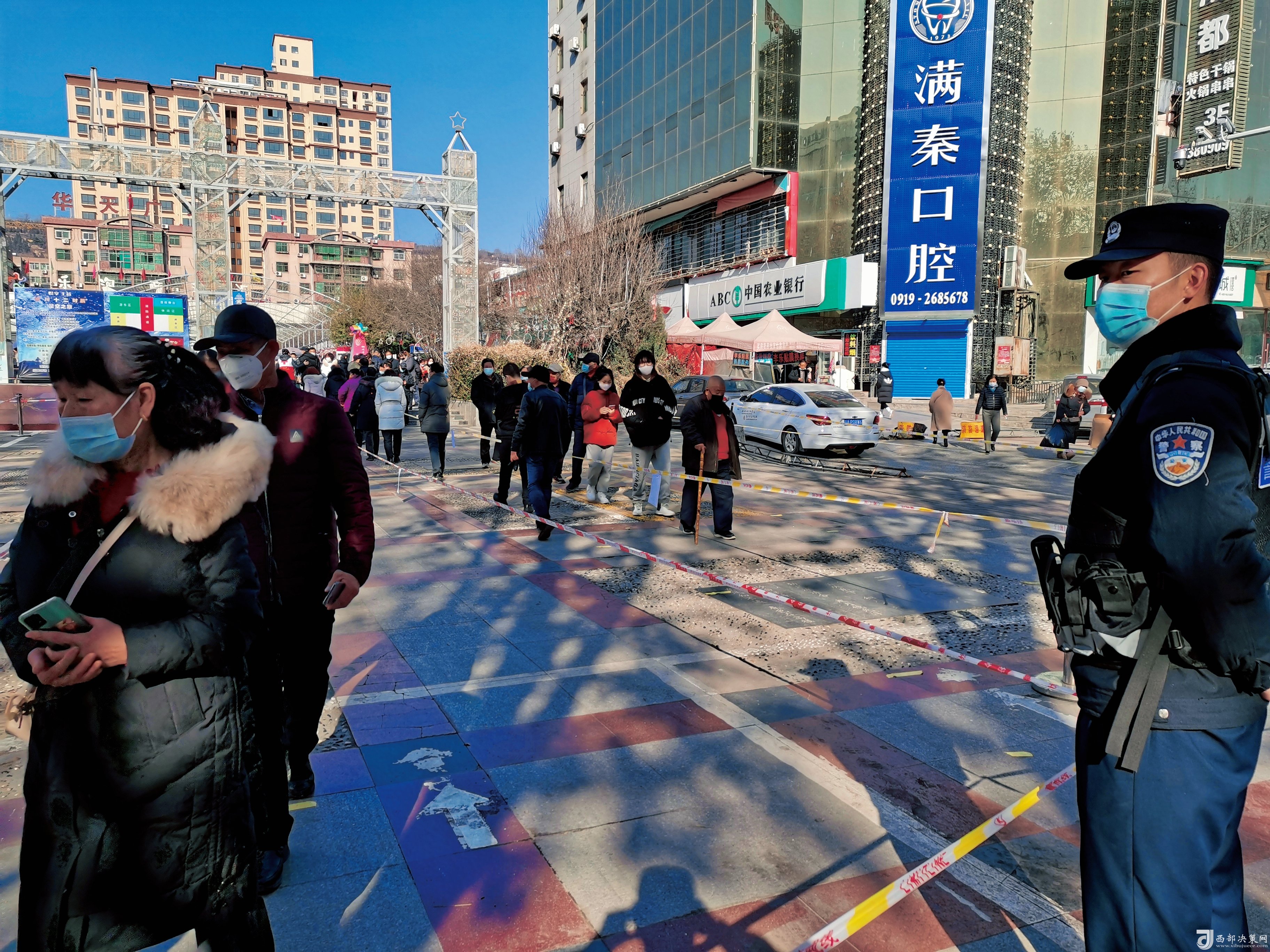 因為疫情肆虐,銅川市王益區(qū)華天廣場專門設(shè)立了核酸檢測站,在每天早上八點到下午六點,為源源不段的市民進行核酸檢測,紅旗街派出所隨即展開了維護秩序的工作,向檢測站提供建議,倡導大家井然有序,保持距離。
