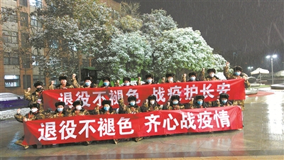 歲末,突如其來的新冠肺炎疫情,讓陜西省西安市按下了暫停鍵。西安高校云集,學子匯聚。在疫情防控的關(guān)鍵時刻,一封封“請戰(zhàn)書”、一個個紅手印出現(xiàn)在各大高校。“我們是退役軍人,我們志愿加入這場沒有硝煙的戰(zhàn)爭”“戎裝雖脫,兵心不改”“我們曾經(jīng)過部隊培養(yǎng),緊急關(guān)頭當然要挺身而出”……西安交通大學強軍先鋒隊、西安建筑科技大學戰(zhàn)旗中隊、西安郵電大學國防青年突擊隊、西安外事學院利刃先鋒退役軍人志愿協(xié)會、陜西國防工業(yè)職業(yè)技術(shù)學院軍魂學社、長安大學弘毅中隊……一支支由退役大學生士兵組成的學生社團主動請纓,戰(zhàn)斗在校園疫情防控一線。