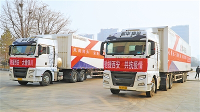 1月6日16時(shí),5輛懸掛愛心標(biāo)語、滿載愛心物資的貨車,從銀川市行政中心出發(fā)駛向西安。據(jù)了解,這些物資最快將在1月7日運(yùn)達(dá)西安市。