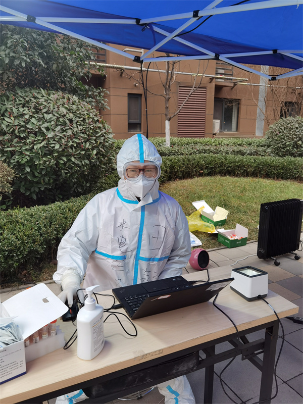 “街坊們,來來來!做核酸檢測,請先到這邊來登記。”身處經(jīng)開區(qū)的劉璇和向權(quán)在接到公司黨委號召后,積極申請參與白樺林社區(qū)的抗“疫”志愿服務(wù)。向權(quán)是一位湖南籍的小伙,和劉璇都是單位的青年職工,作為青年情侶抗“疫”志愿者的他們,主動為社區(qū)居民提供貼心服務(wù),認(rèn)真做好維護現(xiàn)場秩序、協(xié)助登記信息、宣傳防疫知識、排查統(tǒng)計居民困難等工作,積極充當(dāng)著守門員、宣傳員、信息監(jiān)督員和跑腿員,用青春力量構(gòu)建起一條條保障防線。“疫”路難行,你我同在,兩人在服務(wù)過程中耐心的勸導(dǎo)、詳細的詢問和解答都得到了小區(qū)居民的一致好評。“在一次排查獨居老人困難情況時,碰到一位曾從事水利工程工作的87歲清華畢業(yè)老人,這位老人與我們分享了很多工作事跡。”向權(quán)分享這一幕經(jīng)歷時他覺得無比親切與感動。
