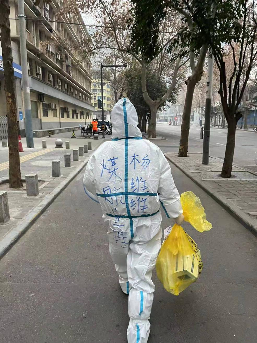 12月23日,全城封閉,西安進入戰(zhàn)備狀態(tài)。我的鄰居已被列為重點隔離觀察對象,每天都有穿著白色防護服的醫(yī)護人員上門進行核酸檢測,第一次讓我感到疫情風(fēng)險近在眼前,但更讓我擔(dān)心的還是鄰居的日常生活和身體狀況,經(jīng)與防疫人員溝通,我負責(zé)起了為鄰居取菜,扔垃圾等事情,保障鄰居安心隔離。