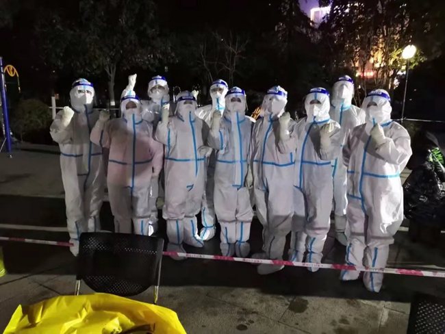 當(dāng)所有工作結(jié)束后已經(jīng)是凌晨兩點,走出樓門抬頭只能看到夜色中飄繞的云霧。一陣寒風(fēng)吹過,困意、寒意、饑餓席卷而來,身前靜謐的路燈,與身后的萬家燈火形成了鮮明對比,此刻的他們別無他想,只有一個信念:一定要堅守住這片陣地。