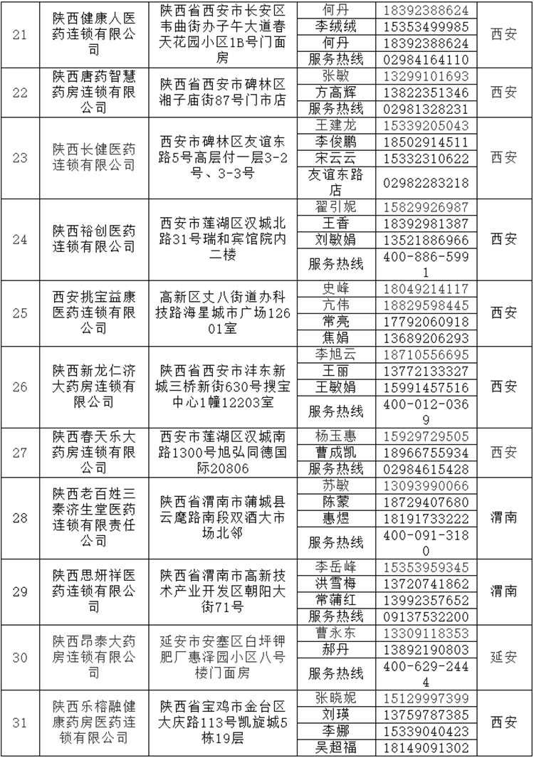 陜西省藥監(jiān)局公布全省31家藥品零售連鎖總部名單及聯(lián)系方式