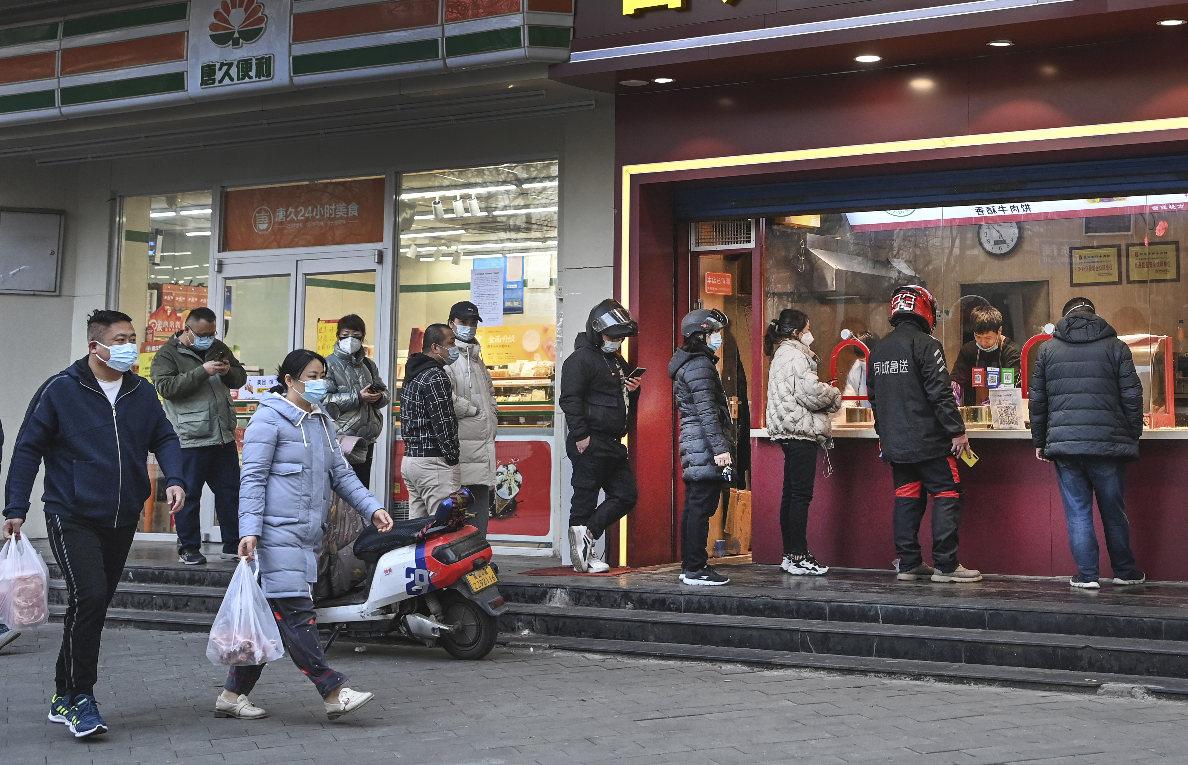 1月17日,人們在西安市碑林區(qū)一家食品店排隊(duì)購買食品。新華社記者 陶明 攝