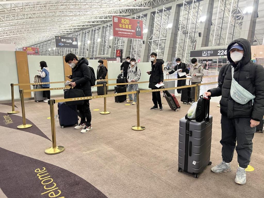 1月20日凌晨5點(diǎn)10分,西安天還未亮,首都航空西安基地的保障人員已經(jīng)就位,等候?qū)W生們的到來。6點(diǎn)39分,第一輛學(xué)生大巴到達(dá)機(jī)場(chǎng),在工作人員的指引下,大家間隔1米接受核碼查驗(yàn),有序進(jìn)入候機(jī)樓辦理值機(jī)手續(xù)。8點(diǎn)34分,162名學(xué)生已全部辦理完值機(jī),托運(yùn)行李148件,陸續(xù)通過安全檢查候機(jī)。9點(diǎn)31分,學(xué)生開始登機(jī),并依次使用手部消毒,認(rèn)真落實(shí)各項(xiàng)防疫政策,9點(diǎn)43分,162名學(xué)生已全部登機(jī)完畢。