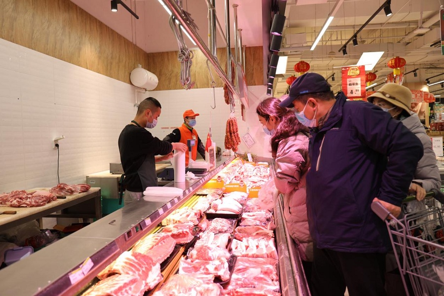 在蔬菜區(qū)、水產(chǎn)區(qū)、肉類區(qū),工作人員稱重、打包,忙得不亦樂乎。“今天一大早就有不少群眾來(lái),各種肉類和火鍋食材賣得很快,還有顧客一次性買了800多元的肉卷。大家都說要多買點(diǎn)菜,好好吃頓火鍋。我們工作人員現(xiàn)場(chǎng)切肉、殺魚,也是忙得不可開交。”該超市一汪姓負(fù)責(zé)人表示,從上午的情況看,群眾購(gòu)買商品的意愿都很強(qiáng),大家對(duì)各類商品的需求都很大。