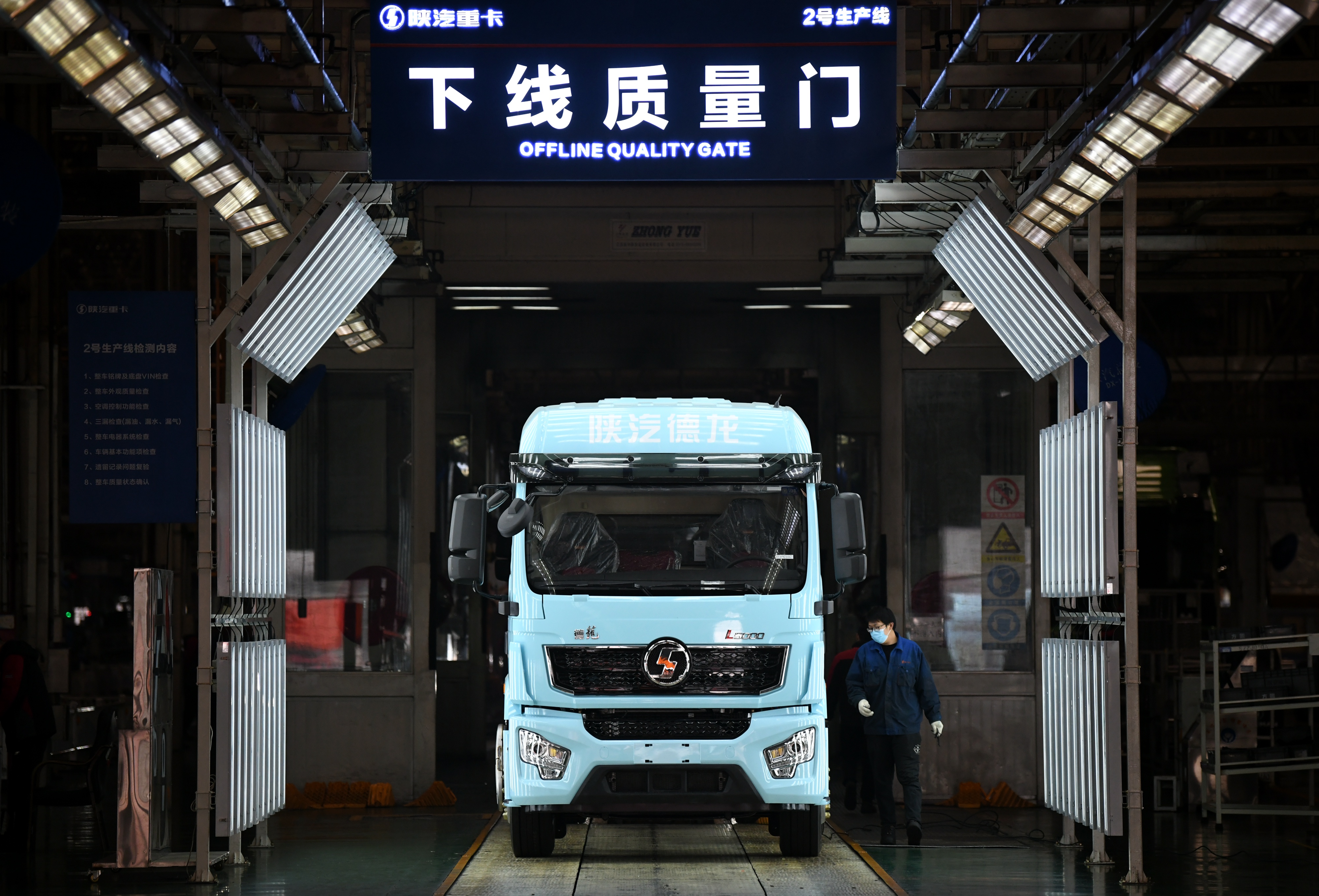 凜冬時節(jié),位于西安市經(jīng)開區(qū)的陜汽控股集團(tuán)總裝配車間,機(jī)器轟鳴,兩條各475米長的傳送鏈正在緩慢推進(jìn),390余名戴著口罩、身著藍(lán)色工服的工人們正埋頭組裝汽車,平均每六分鐘就有一輛重卡從這里下線,遠(yuǎn)銷國內(nèi)外市場。