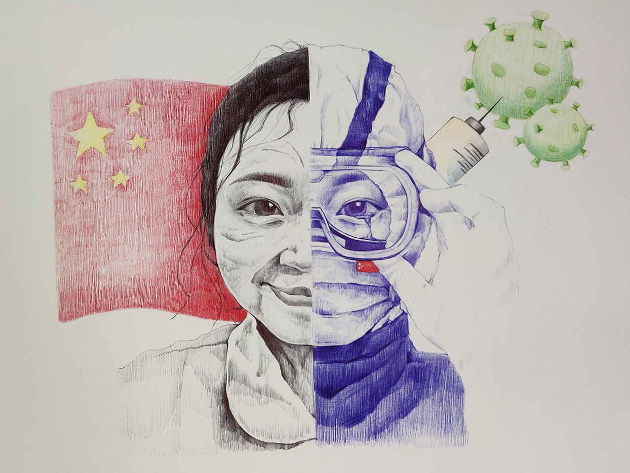 2021年12月,新冠肺炎疫情在西安突然暴發(fā),面對(duì)突如其來的疫情和嚴(yán)峻復(fù)雜的防控形勢(shì),在加強(qiáng)落實(shí)疫情防控、保障師生健康的同時(shí),西安工程大學(xué)服裝與藝術(shù)設(shè)計(jì)學(xué)院積極應(yīng)對(duì),組織全院師生有序、規(guī)范開啟2021年秋季期末課程結(jié)課的線上教學(xué)。任課教師及時(shí)調(diào)整結(jié)課作業(yè)主題,充分利用視覺傳達(dá)設(shè)計(jì)專業(yè)特點(diǎn),組織同學(xué)們嚴(yán)謹(jǐn)認(rèn)真、激情飽滿地用畫筆以藝抗疫,致敬最美逆行者!
