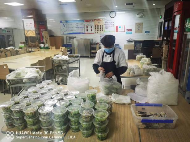 同時(shí),醫(yī)院還成立志愿者送餐服務(wù)隊(duì),為住院患者及陪人提供送餐服務(wù)。餐廳再次完善了送餐流程,明確了餐箱消毒及工作人員防護(hù)要求,讓住院患者享受營養(yǎng)健康又熱乎乎的飯菜。隊(duì)員中有行政后勤人員、醫(yī)生、護(hù)士,他們與餐廳密切合作,確保準(zhǔn)時(shí)送達(dá)、數(shù)量準(zhǔn)確,為了保證飯菜的溫度,他們加快速度,提高效率,送餐隊(duì)員們練就了熟練的推車技術(shù),各個(gè)都成了“推車高手”,每一餐一千多份餐食移交完畢,隊(duì)員們笑著說“腰都快直不起來了。”但他們沒有一個(gè)人叫苦叫累,都說“看到患者吃著熱乎的飯菜,我們覺得每天都是值得的!能為患者服務(wù)好,便是我們對(duì)西安抗疫做的最大貢獻(xiàn)。”