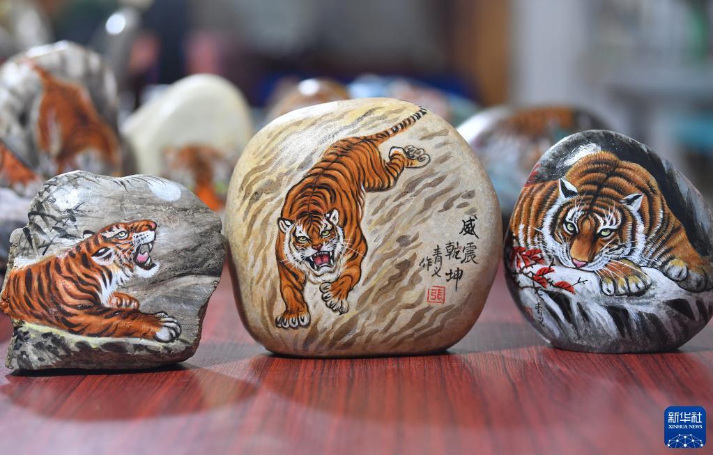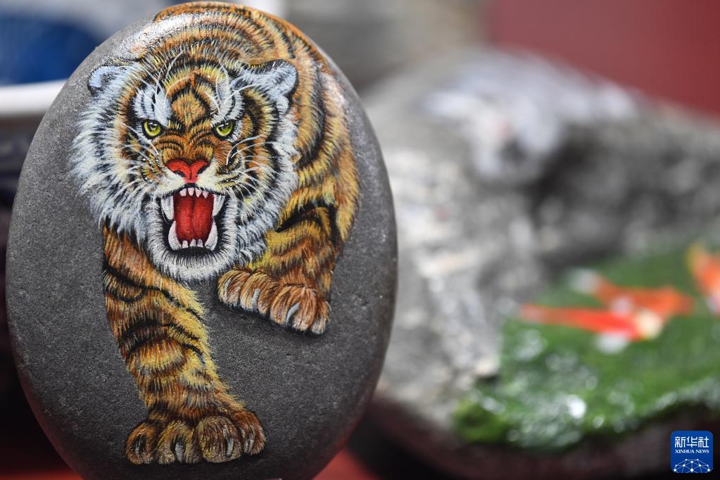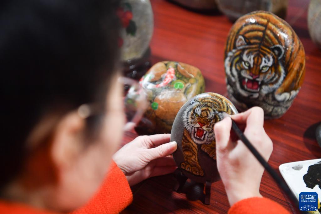 農歷虎年將至,陜西省西安市鄠邑區(qū)的農民畫家以石材為畫布,創(chuàng)作虎主題作品迎接新春佳節(jié)。