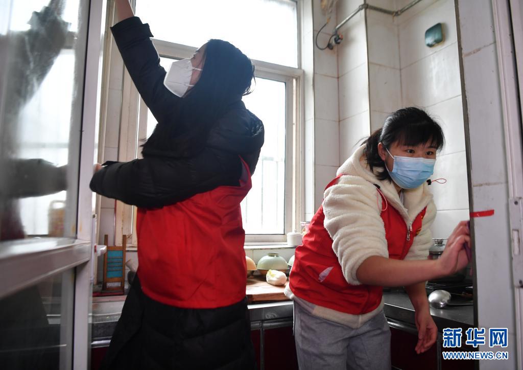 1月27日,志愿者為西安市鄠邑區(qū)幸福佳苑社區(qū)的困難群眾義務打掃衛(wèi)生。新華社記者 張博文 攝