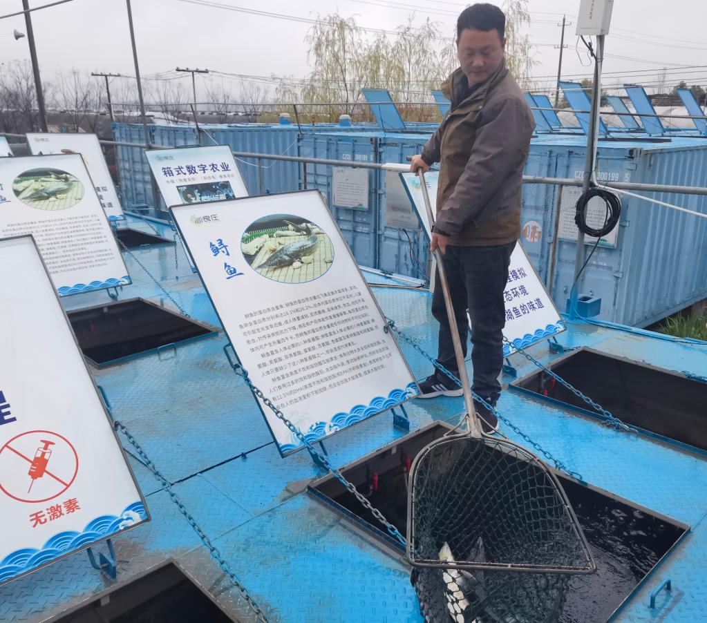 “我們模擬活水循環(huán),采用尾水處理、養(yǎng)殖廢水利用等方式,打造適合魚類生長的環(huán)境,實現(xiàn)全程可控化、標(biāo)準(zhǔn)化生產(chǎn)。”良莊農(nóng)業(yè)科技園負(fù)責(zé)人陳金良告訴記者,與普通魚塘相比,集裝箱養(yǎng)殖同等數(shù)量的魚,可以節(jié)約土地資源和水資源均在90%以上,“這個智慧漁場有70個集裝箱,一年能產(chǎn)魚約40萬斤。”