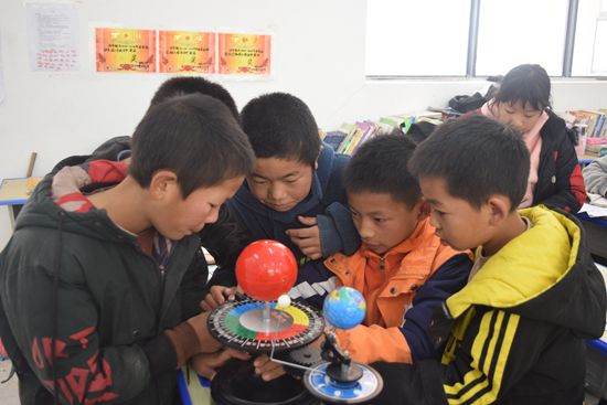 為民小學(xué)學(xué)生在觀察三球儀。