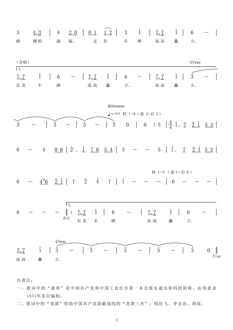 一、A1段歌詞中的“豪密”是中國共產(chǎn)黨和中國工農紅軍第一本無線電通訊密碼的簡稱,由周恩來1931年親自編制。