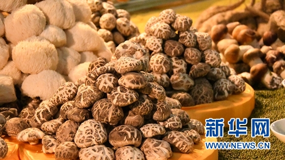 圖為隨州香菇在2021年湖北農(nóng)業(yè)博覽會(huì)上展出。新華網(wǎng)發(fā) 夏國燕攝