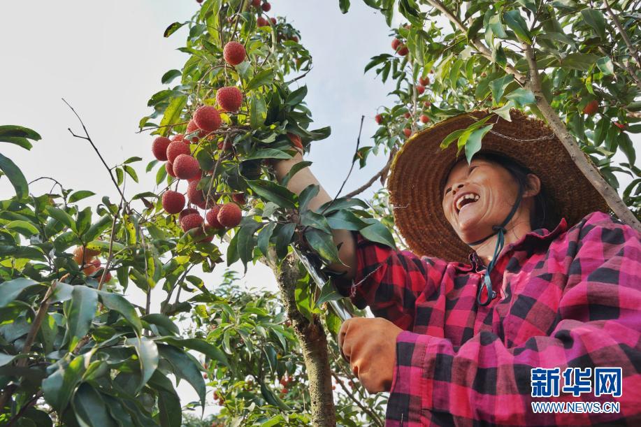 茂名果農(nóng)收獲荔枝。新華網(wǎng)發(fā) 石磊 攝