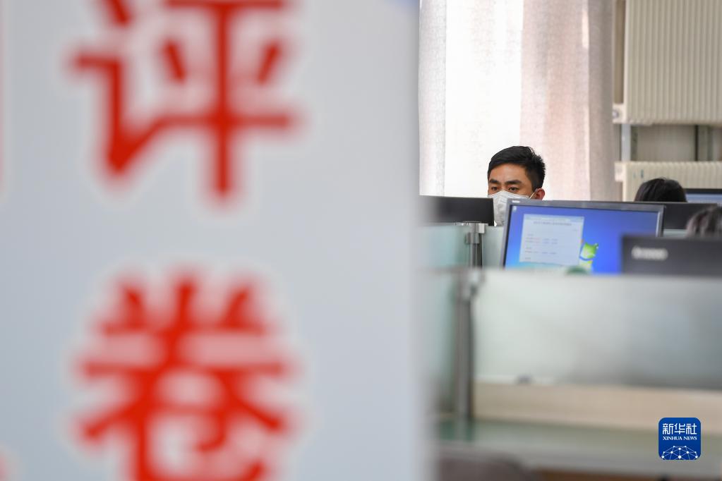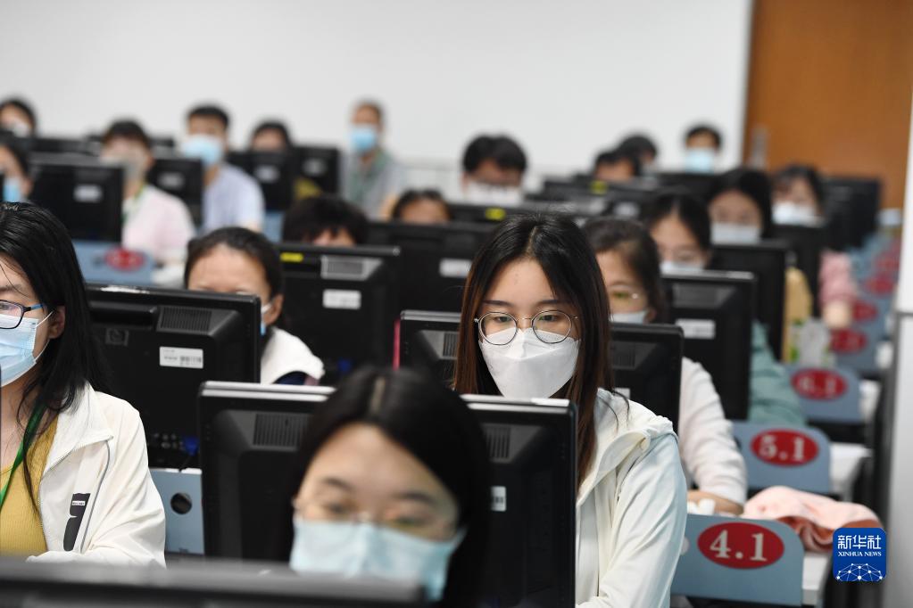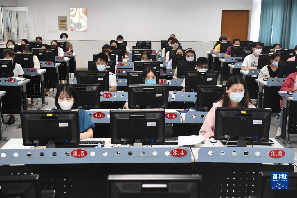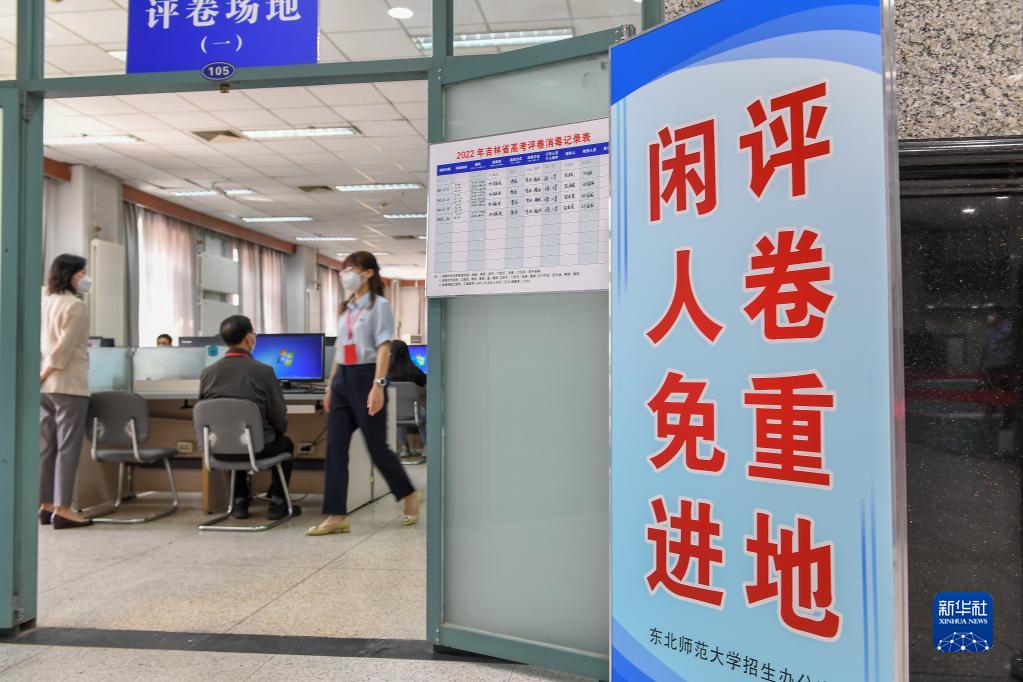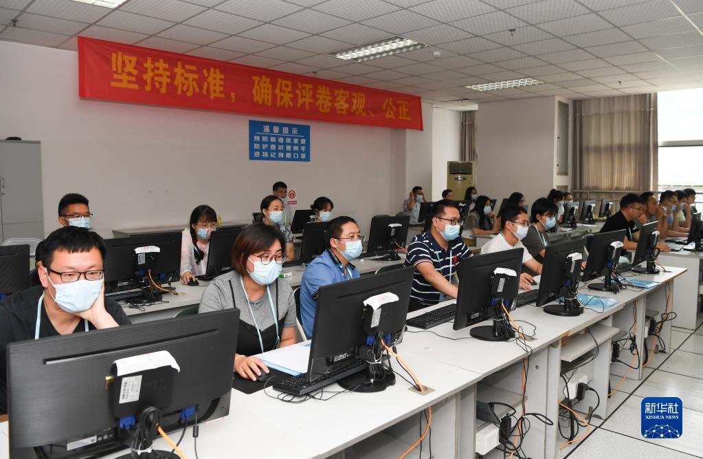 6月14日,在位于吉林長春的東北師范大學(xué)高考網(wǎng)上評卷點,工作人員在評卷。據(jù)了解,2022年吉林省高考評卷工作全部采用電子掃描、網(wǎng)上評卷方式進行。新華社記者 張楠 攝