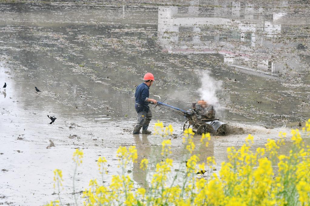 農(nóng)民利用小型農(nóng)機(jī)在拋荒耕地中作業(yè)。李建新攝(新華社發(fā))