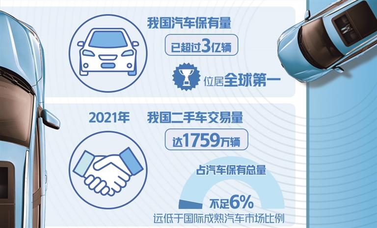 據(jù)了解,我國汽車保有量已超過3億輛,位居全球第一。汽車保有量達到一定程度后,二手車市場就開始放量,這是國際上汽車消費的普遍規(guī)律。2021年,我國二手車交易量達1759萬輛,不到汽車保有總量的6%,遠低于國際成熟汽車市場比例,二手車跨區(qū)域限遷、商品屬性不明確、經(jīng)銷業(yè)務(wù)受限多等問題,嚴重阻礙了二手車市場發(fā)展。
