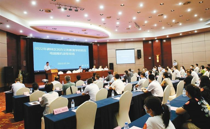 7月24日上午,我市各相關(guān)區(qū)縣、開發(fā)區(qū)統(tǒng)一實施民辦義務(wù)教育學(xué)校電腦隨機(jī)錄取工作。本報記者作為媒體監(jiān)督員,來到位于雍村飯店的碑林區(qū)民辦義務(wù)教育學(xué)校招生電腦隨機(jī)錄取工作現(xiàn)場,實地觀察體驗“搖號”全過程。