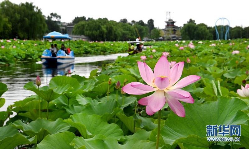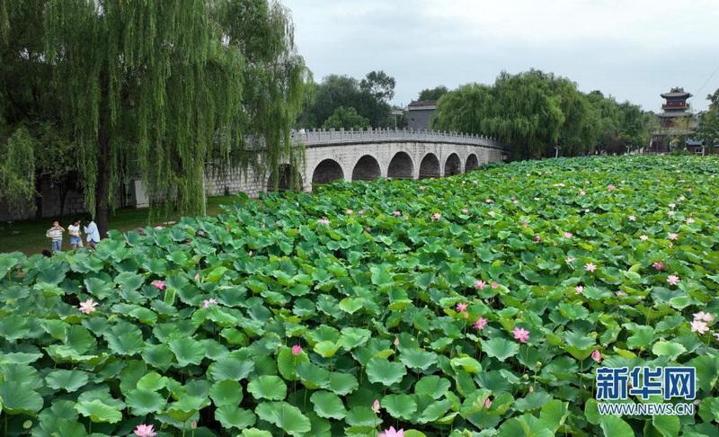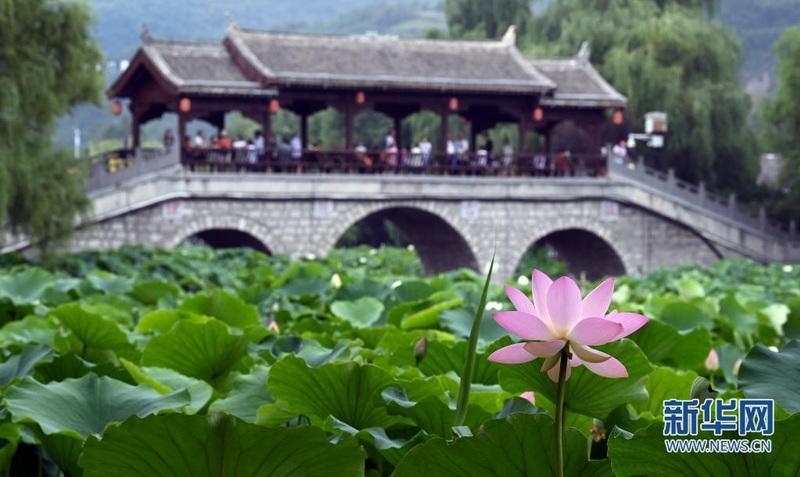 近日,秦嶺深處的陜西省商洛市丹鳳縣棣花古鎮(zhèn)荷花盛開(kāi),吸引游人前來(lái)觀賞。(記者 陶明 攝)