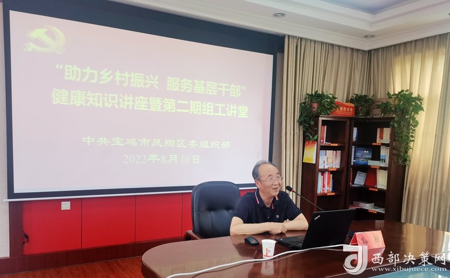 西部決策網(wǎng)訊 近日,九三學(xué)社寶雞市鳳翔區(qū)綜合支社醫(yī)學(xué)研究室,在鳳翔區(qū)委組織部開展“助力鄉(xiāng)村振興 服務(wù)基層干部”健康知識(shí)講座活動(dòng)。本次活動(dòng)以智慧黨建平臺(tái)視頻系統(tǒng)召開,鳳翔區(qū)委組織部為主會(huì)場(chǎng),各鎮(zhèn)、村設(shè)分會(huì)場(chǎng),各鎮(zhèn)機(jī)關(guān)干部、村干部,駐村工作隊(duì)第一書記、隊(duì)員,鳳翔區(qū)委組織部機(jī)關(guān)全體干部,共計(jì)600余人參加會(huì)議。