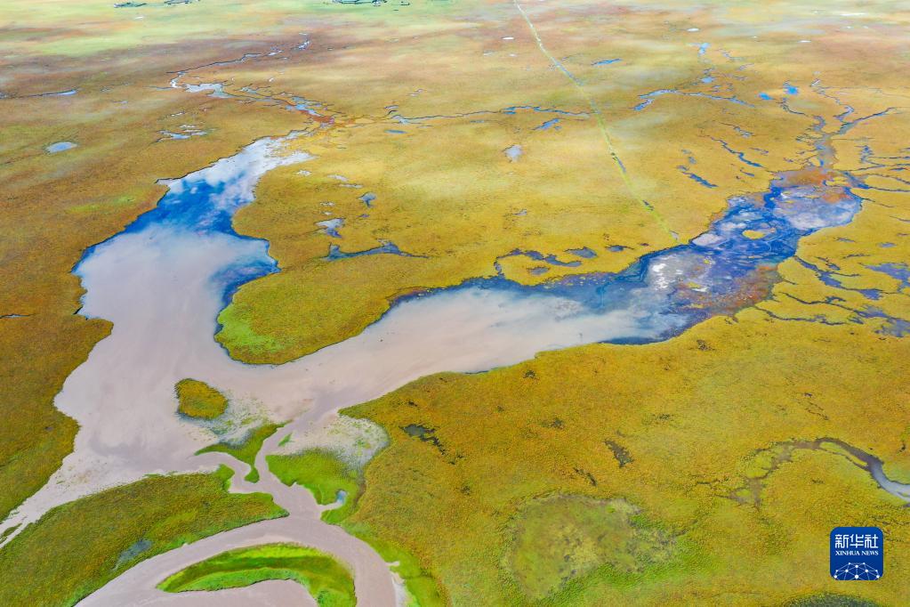 這是瑪曲縣阿萬(wàn)倉(cāng)濕地內(nèi)的一處沼澤(9月17日攝,無(wú)人機(jī)照片)。新華社記者 郎兵兵 攝