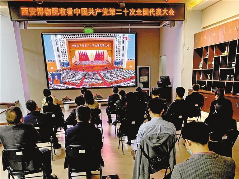 10月16日,西安博物院黨員干部群眾一起收看黨的二十大開幕會(huì)。記者 戴吉坤攝