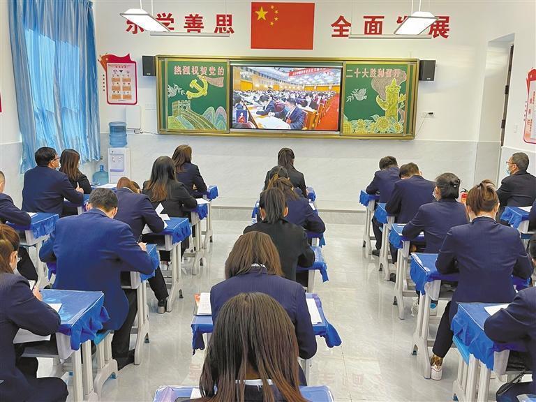 10月16日,楊家?guī)X福州希望小學(xué)的教職工集中收看黨的二十大開幕會(huì)。記者 陳宏江攝