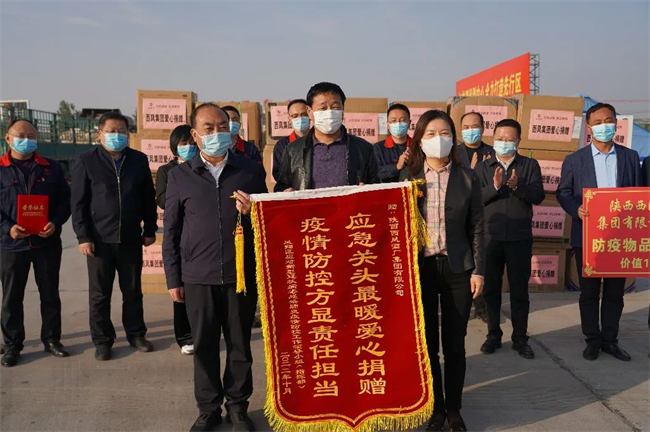 儀式上,西鳳集團(tuán)公司向鳳翔區(qū)新冠疫情工作領(lǐng)導(dǎo)小組捐贈(zèng)了價(jià)值10萬元的防疫物資1000套。