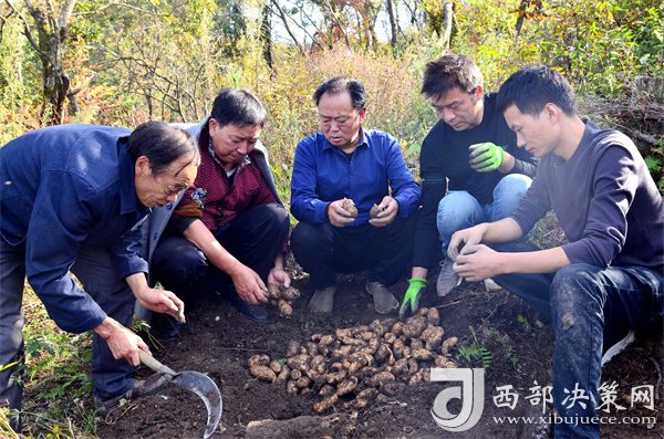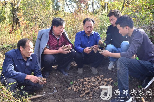 金秋十月,碩果累累。10月18日下午,在海拔1500多米,漫山紅遍、層林盡染的陜西省漢中市寧強(qiáng)縣陽(yáng)平關(guān)鎮(zhèn)伍家壩村磨刀寨的山林里,寧強(qiáng)縣財(cái)政局派駐伍家壩村第一書記唐賢斌、寧強(qiáng)縣天麻研究所的專家張懷榮與天麻種植大戶朱清衛(wèi)、劉堂勇、成溫斌等人正在查看天麻的收成、準(zhǔn)備采挖豐收的天麻。