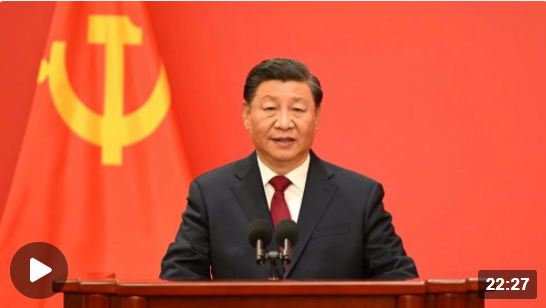 在中國(guó)共產(chǎn)黨第二十屆中央委員會(huì)第一次全體會(huì)議上當(dāng)選的中共中央總書(shū)記習(xí)近平和中共中央政治局常委李強(qiáng)、趙樂(lè)際、王滬寧、蔡奇、丁薛祥、李希,23日中午在人民大會(huì)堂同采訪中共二十大的中外記者見(jiàn)面。習(xí)近平發(fā)表重要講話。
