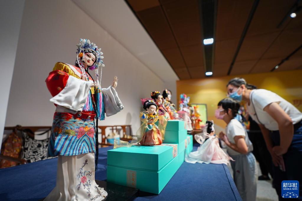 觀眾在中國工藝美術(shù)館觀看北京絹人工藝品(2022年9月10日攝)。新華社記者 陳鐘昊 攝
