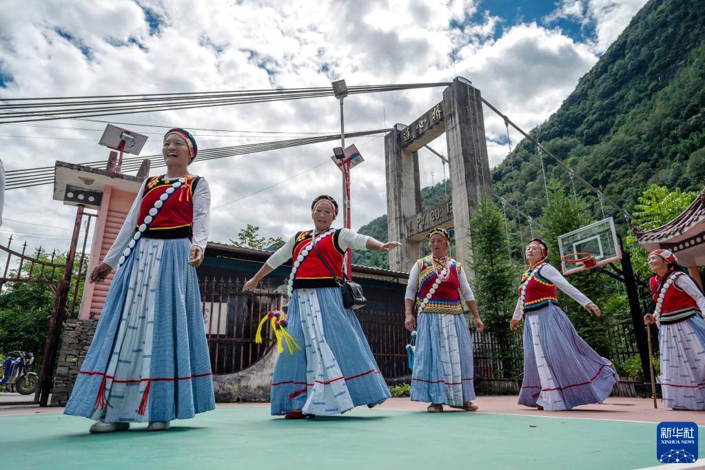 云南省怒江州福貢縣石月亮鄉(xiāng)拉瑪?shù)状宕迕褡园l(fā)組成的“奮進合唱團”在村委會排練節(jié)目(2022年9月14日攝)。2020年,怒江州26.96萬貧困人口全部脫貧,249個貧困村全部出列,4個貧困縣(市)全部摘帽。新華社記者 江文耀 攝
