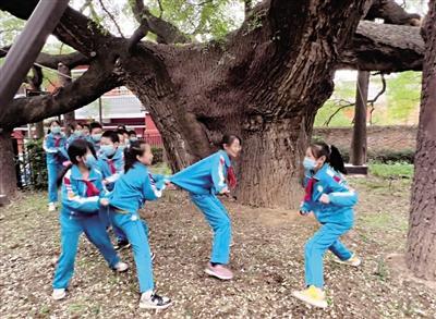 平時(shí),老師會(huì)圍繞這棵樹給大家上課。根據(jù)歷史典故,學(xué)校還制作了一些課本劇,讓大家更深入地了解歷史故事,也更懂得這棵樹的珍貴,懂得共同愛護(hù)這棵樹。