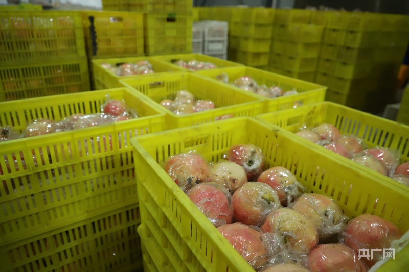 分揀好的石榴正準(zhǔn)備被發(fā)往全國(guó)各地(央廣網(wǎng)見習(xí)記者 侯凱奇 攝)