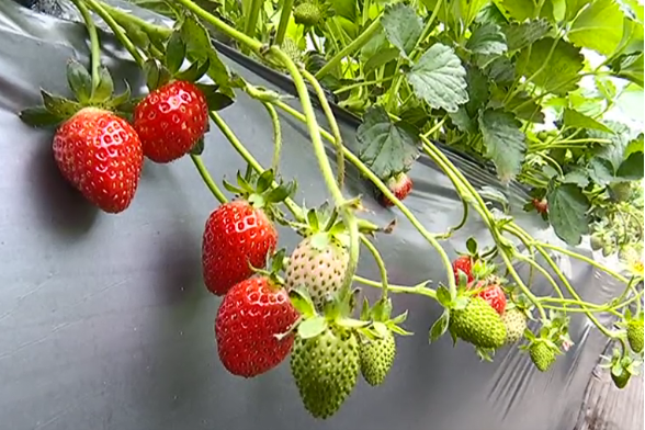 陜西省西安市高陵區(qū)東張市村農業(yè)觀光采摘園目前已建成3棟現(xiàn)代溫室大棚,占地4000余平方米,采用空間利用率高、草莓容易吸收養(yǎng)分,且便于采摘管理的國內最新超高壟草莓種植技術,引進栽植“鳳冠”“隋株”“白雪公主”等優(yōu)質草莓35000株。