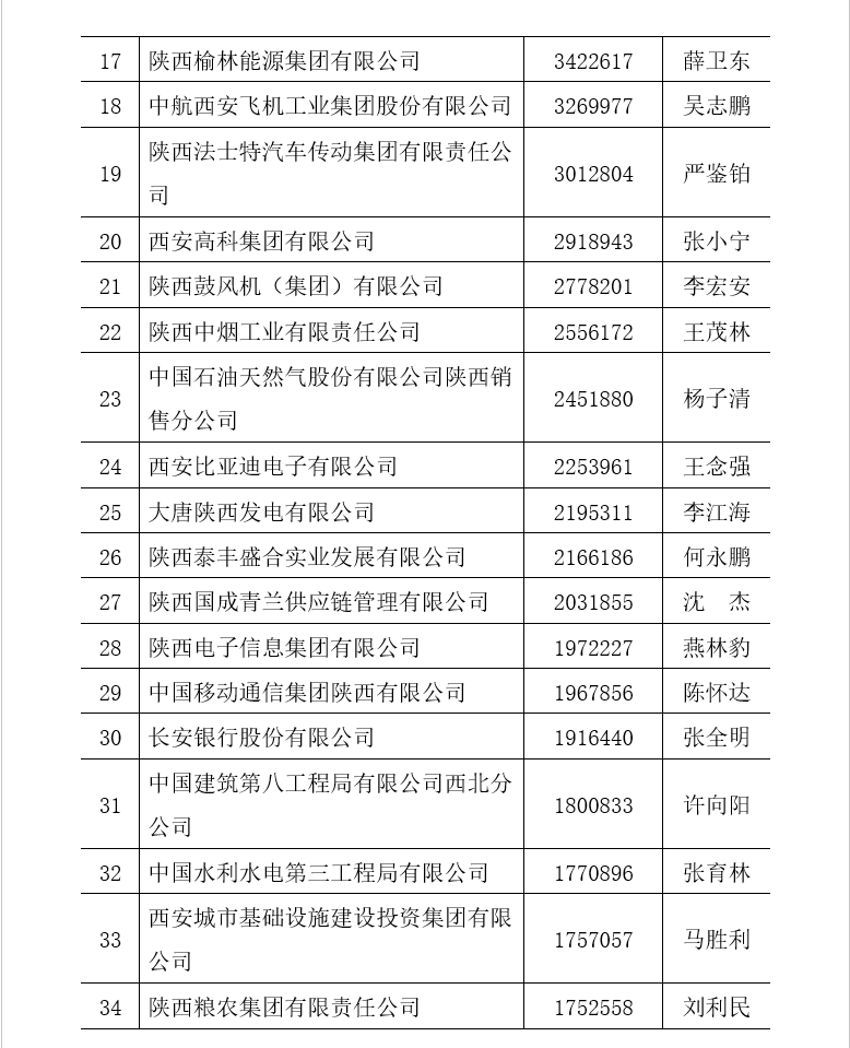 附件一:2022陜西企業(yè)100強(qiáng)排序名單