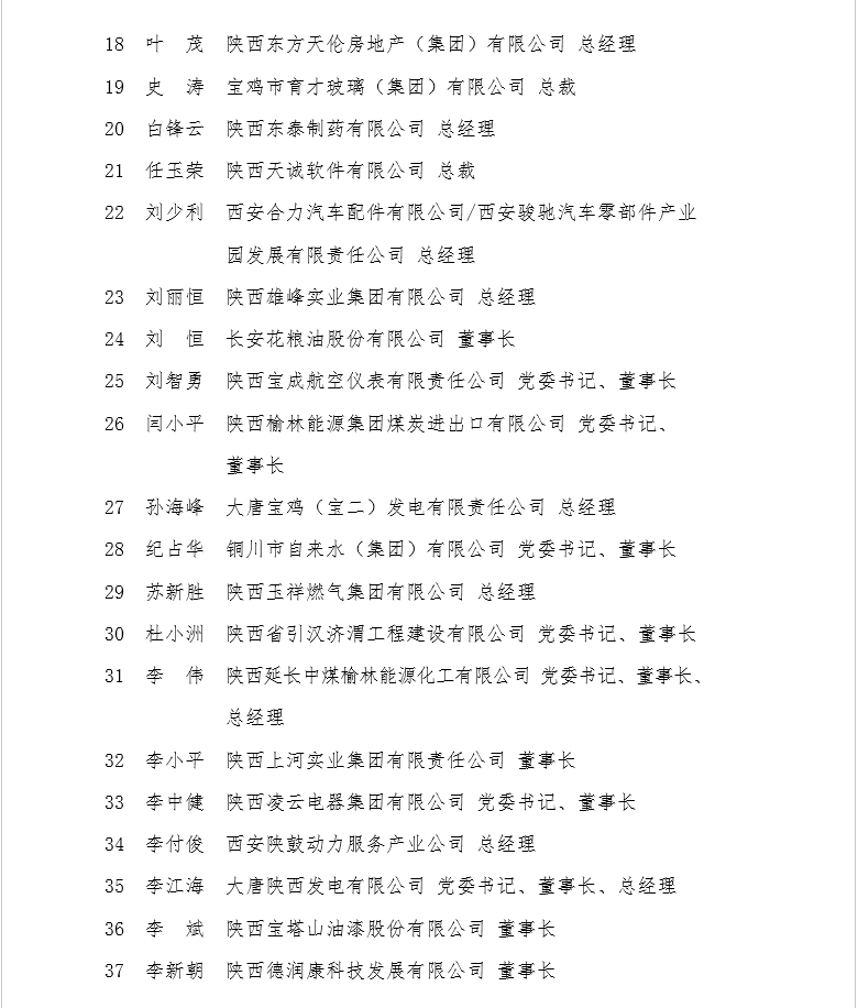 附件三:第九屆陜西省優(yōu)秀企業(yè)家名單