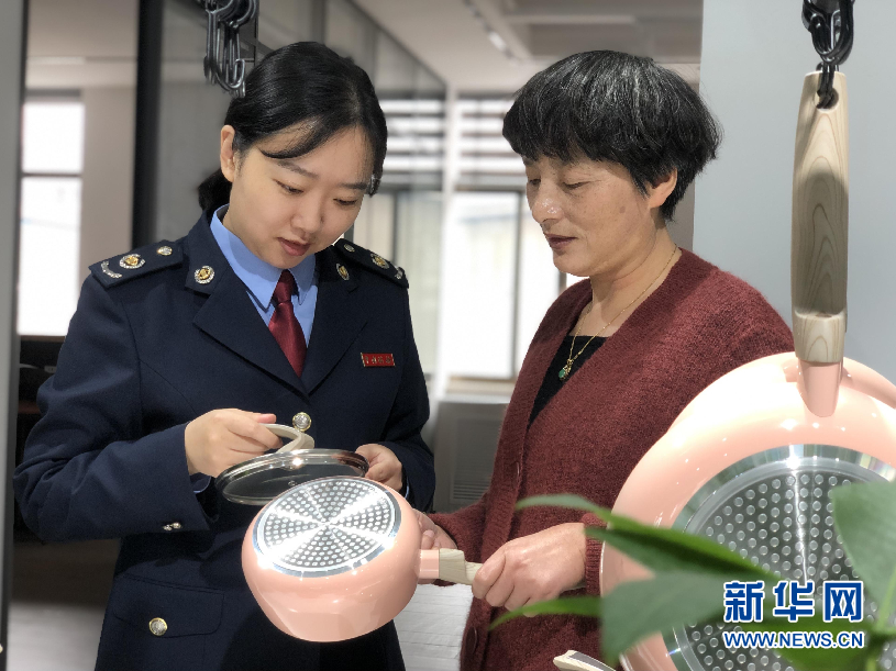 稅務人員與寧波喜爾美廚房用品有限公司工作人員交流。新華網發(fā)