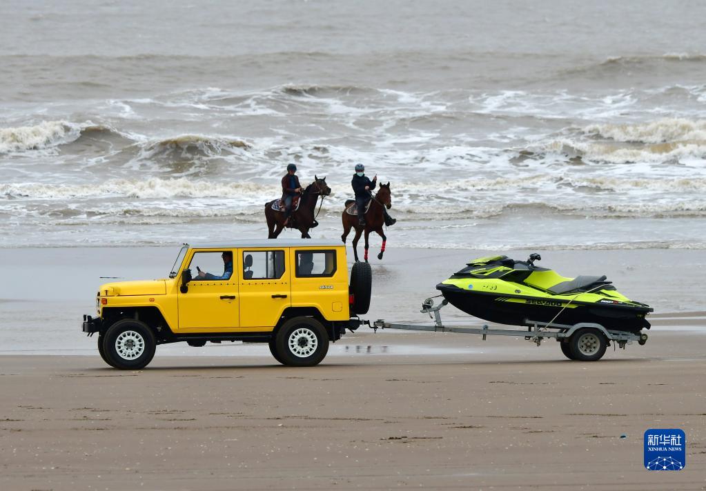 1月1日,馬術(shù)俱樂部成員在福建省福州市長樂區(qū)南澳海灘體驗(yàn)海騎樂趣。新華社記者 魏培全 攝