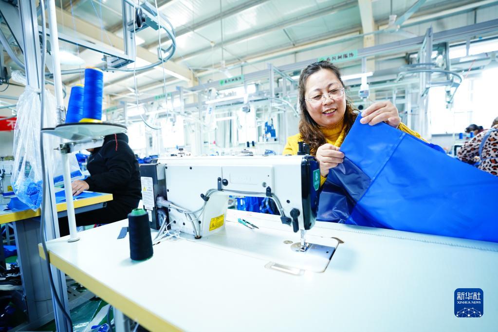 2022年12月26日,在河北省阜平縣大教廠村的春風(fēng)樹服飾有限公司手工業(yè)生產(chǎn)車間,村民在做校服。新華社發(fā)(李秀芹 攝)